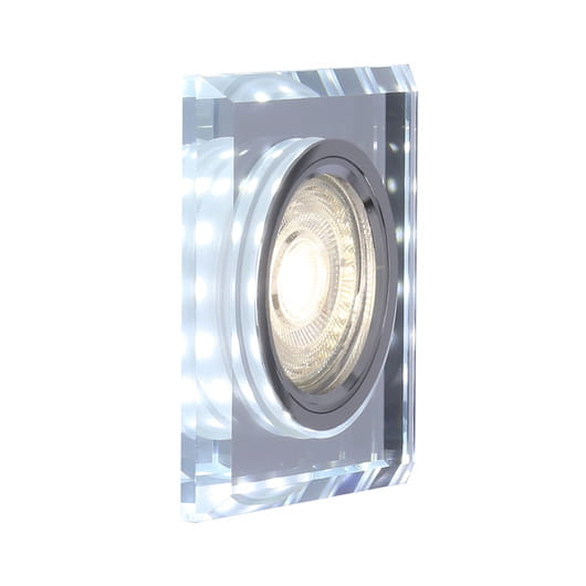 Szklana oprawa stropowa wyposażona w standardowy trzonek GU10 do wymienialnych lamp oraz dekoracyjny i funkcjonalny pasek LED o mocy 2,1 W.