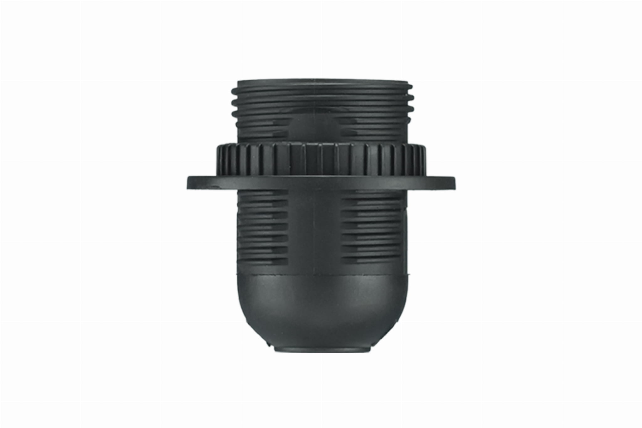 Oprawka termoplastyczna PAWBOL D.3006 z gwintem E27 i kołnierzem . Wykonana z wytrzymałego tworzywa sztucznego, w kolorze czarnym. Idealna do lamp domowych, opraw dekoracyjnych, żyrandoli oraz wszędzie tam, gdzie potrzebny jest stabilny montaż żarówki i estetyczne wykończenie otworu oprawy.