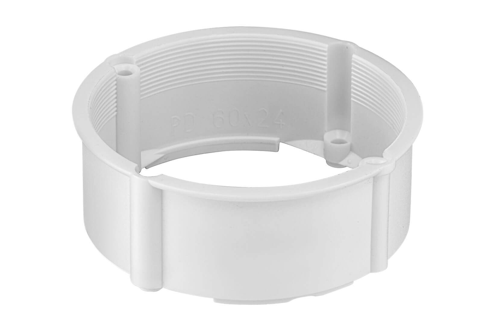 Pierścień dystansowy o wymiarach 60×24 mm, przeznaczony do puszek instalacyjnych i elementów elektroinstalacyjnych. Umożliwia precyzyjne ustawienie puszki względem powierzchni ściany lub zwiększenie jej głębokości. Wykonany z wytrzymałego tworzywa sztucznego, odpornego na uszkodzenia mechaniczne i wysoką temperaturę, co gwarantuje trwałość i bezpieczeństwo montażu.