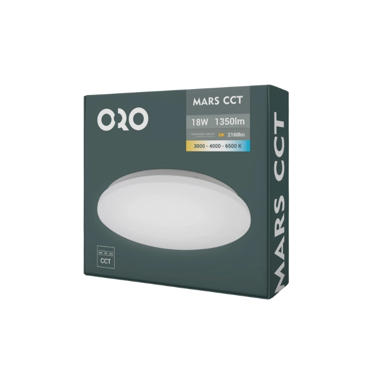 Plafoniera LED ORO MARS CCT 18W (ORO33139) marki LED‑POL to nowoczesne oświetlenie sufitowe z regulowaną barwą światła (CCT), które pozwala płynnie zmieniać temperaturę barwową od ciepłej 3000 K, przez neutralną 4000 K, aż po zimną 6500 K — dzięki temu idealnie dopasujesz światło do charakteru pomieszczenia i aktualnych potrzeb. Plafon o mocy 18 W emituje jasne, równomierne światło o wysokiej jakości, doskonale sprawdzające się w salonach, kuchniach, sypialniach, biurach i korytarzach. Minimalistyczny, nowoczesny design z mlecznym kloszem zapewnia estetyczny wygląd i harmonijną integrację z różnymi stylami wnętrz. Solidna konstrukcja i energooszczędna technologia LED gwarantują długą żywotność i niskie koszty eksploatacji.