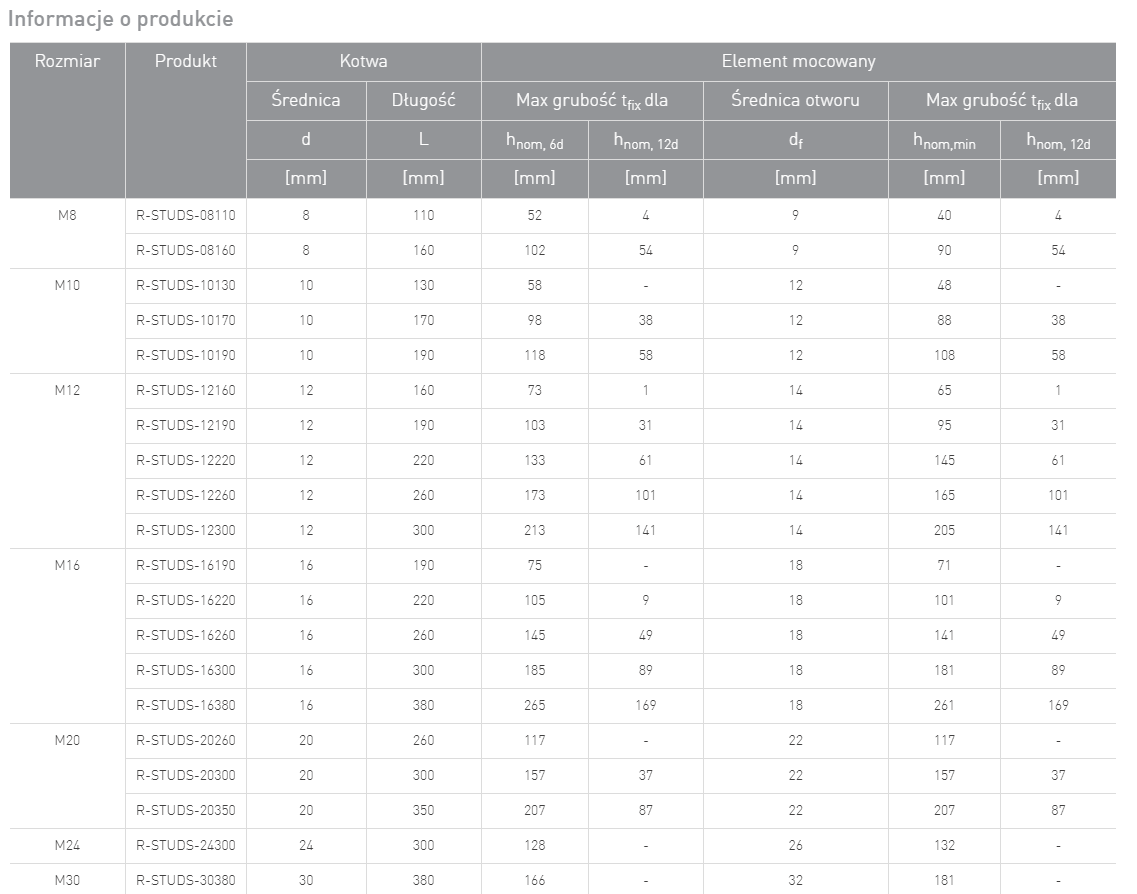 - Pręt jest elementem systemu kotwienia wysokich obciążeń do stosowania z kotwą wklejaną w kapsułkach, kartridżach lub w systemie CFS+