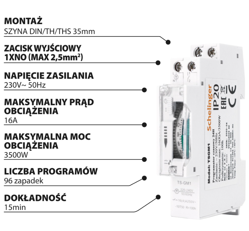 Programator czasowy mechaniczny 24h SCHELINGER A26-TSGM1 BEMKO