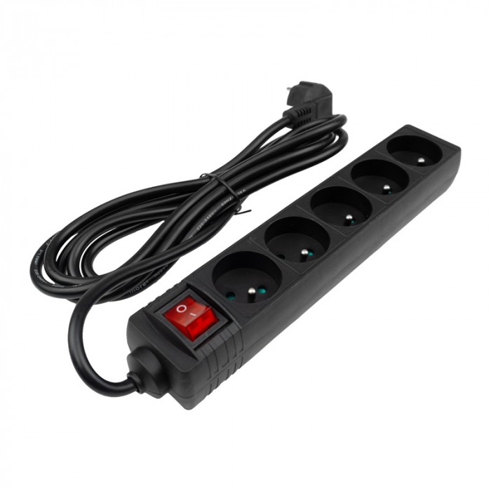 Przedłużacz 5 gniazd 3m z wyłącznikiem czarny M20581 ECOLIGHT