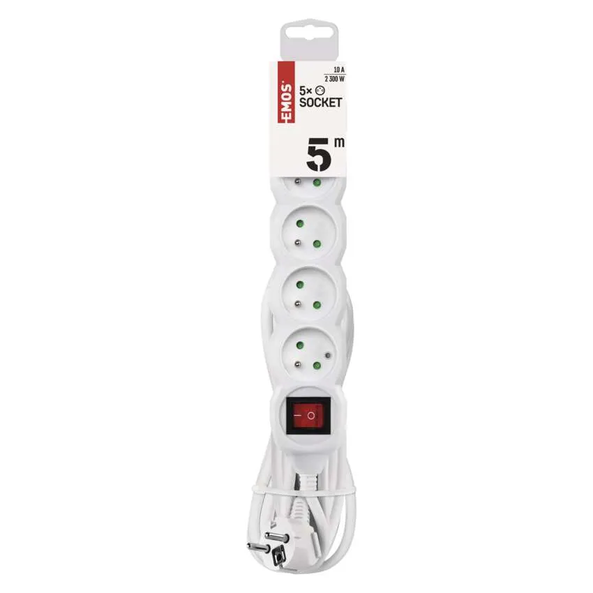 Przedłużacz 5m 5 gniazd z wyłącznikiem biały PVC 1mm2 EMOS