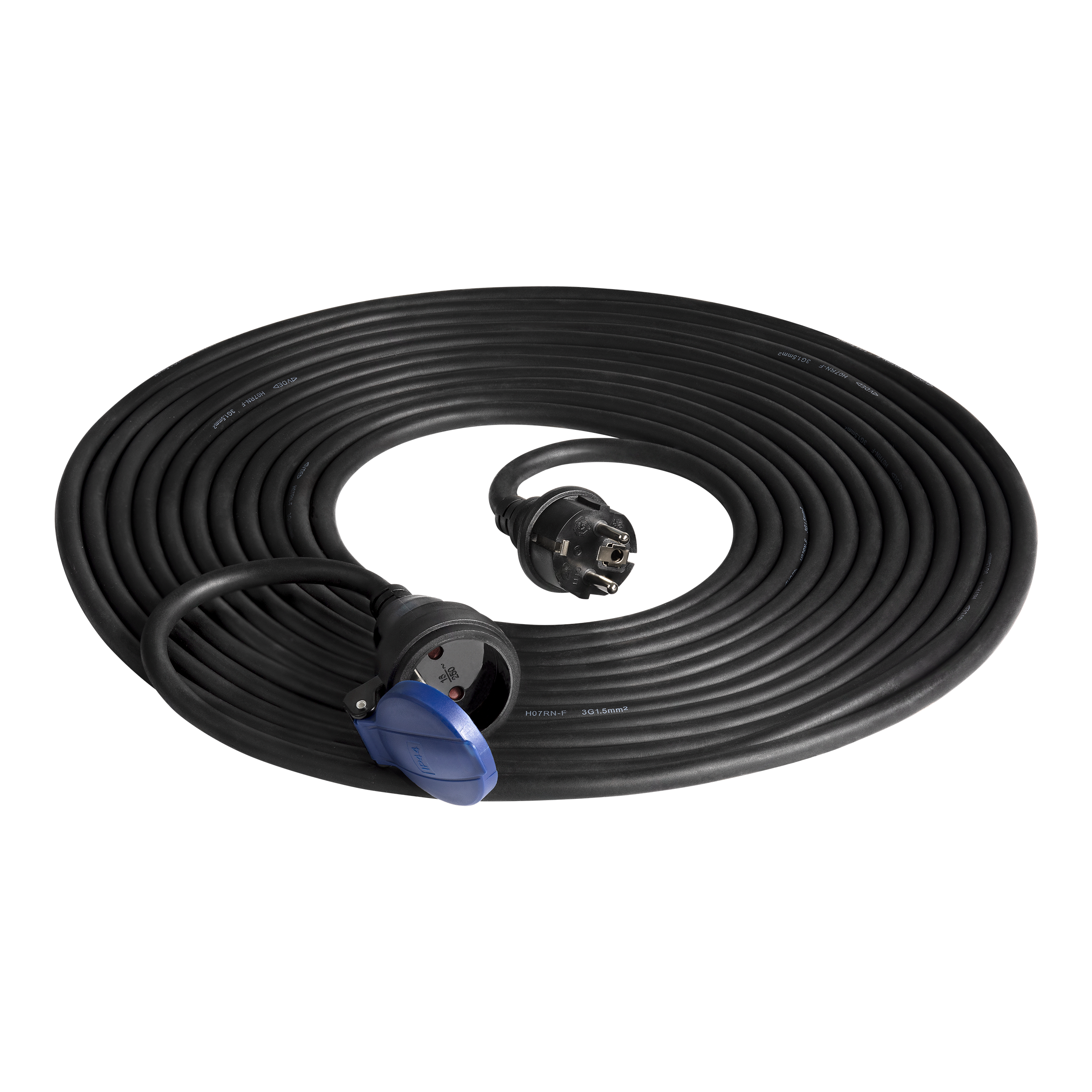 Przedłużacz warsztatowy, o stopniu szczelności IP44. Posiada 1 gniazdo (2P+Z) z plastikową osłoną, która chroni wnętrze gniazda przed dostępem wody i pyłów. Posiada przesłony torów prądowych. Gumowy, olejoodporny kabel z uziemieniem (H07RN-F 3x1,5mm2) ma długość 10m.