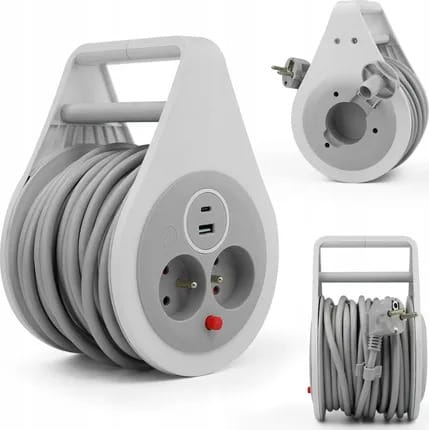 PLASTROL oferuje 10-metrowy zwijany przedłużacz (model W-72017), który posiada zarówno porty USB-A, jak i USB-C, dzięki czemu jest wszechstronny do ładowania różnych urządzeń elektronicznych.