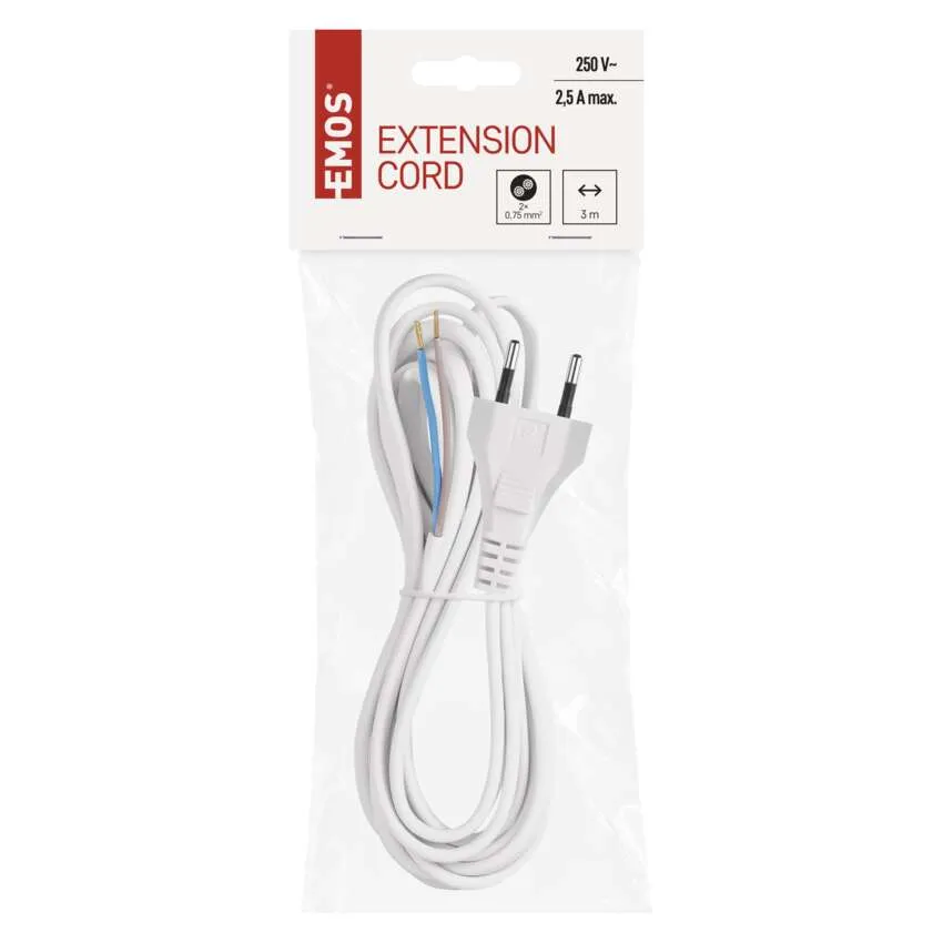 Przewód przyłączeniowy PVC 2×0,75mm, 3m biały EMOS