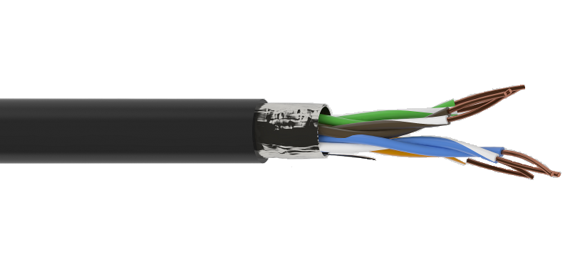 Przewód teleinformatyczny z żyłami miedzianymi, jedndrutowymi w wiązkach parowych; każda żyła o średnicy 0,5mm. Ekran wspólny dla wszystkich par żył z folii AL./PET. Izolacja żył z polietylenu. Powłoka zewnętrzna z pogrubionego PVC w kolorze czarnym. Przewód przewodzi sygnał o częstotliwości 125MHz. Konstrukcja przewodu wypełniona żelem pochłaniającym wilgoć.