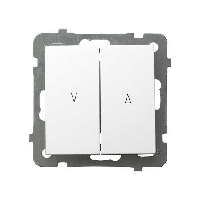 Przycisk żaluzjowy AS biały ŁP-7G/M/00 OSPEL to łącznik wyposażony w dwa przyciski, stosowany do sterowania żaluzjami (podnoszenie/opuszczanie).