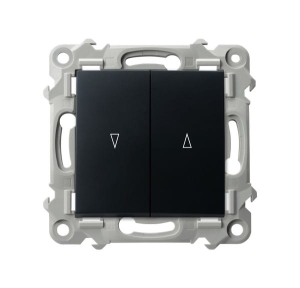 Łącznik wyposażony w dwa przyciski. Stosowany do sterowania żaluzji (podnoszenie/opuszczanie). Podnoszenie lub opuszczanie żaluzji następuje poprzez przytrzymanie przycisku. Pozwala na łączenie w obrębie dwóch oddzielnych obwodów, ale uniemożliwia łączenie ich jednocześnie. Do kompletu wymagana ramka. Można stosować do systemów ramkowych wielokrotnych.