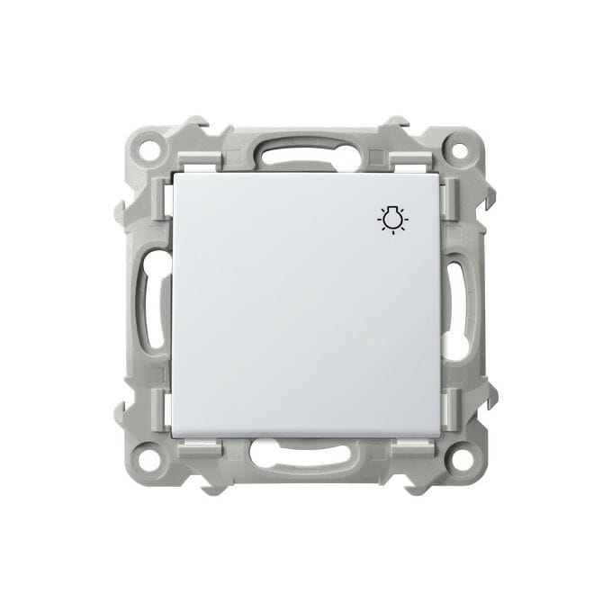 Łącznik działa jako przycisk zwierny - odbijający. W połączeniu z automatem schodowym może służyć do załączania światła na klatkach schodowych. Może być wykorzystany do otwierania/zamykania bramy garażowej. Do kompletu wymagana ramka. Można stosować do systemów ramkowych wielokrotnych.