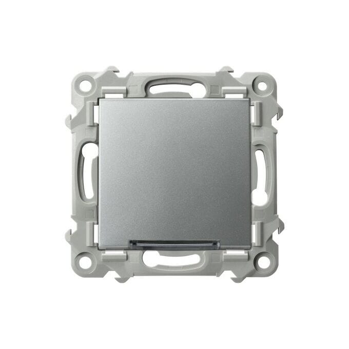 Łącznik działa jako przycisk zwierny, odbijający, bez piktogramu. Służy do załączania dzwonka, gongu. Do kompletu wymagana ramka. Można stosować do systemów ramkowych wielokrotnych.