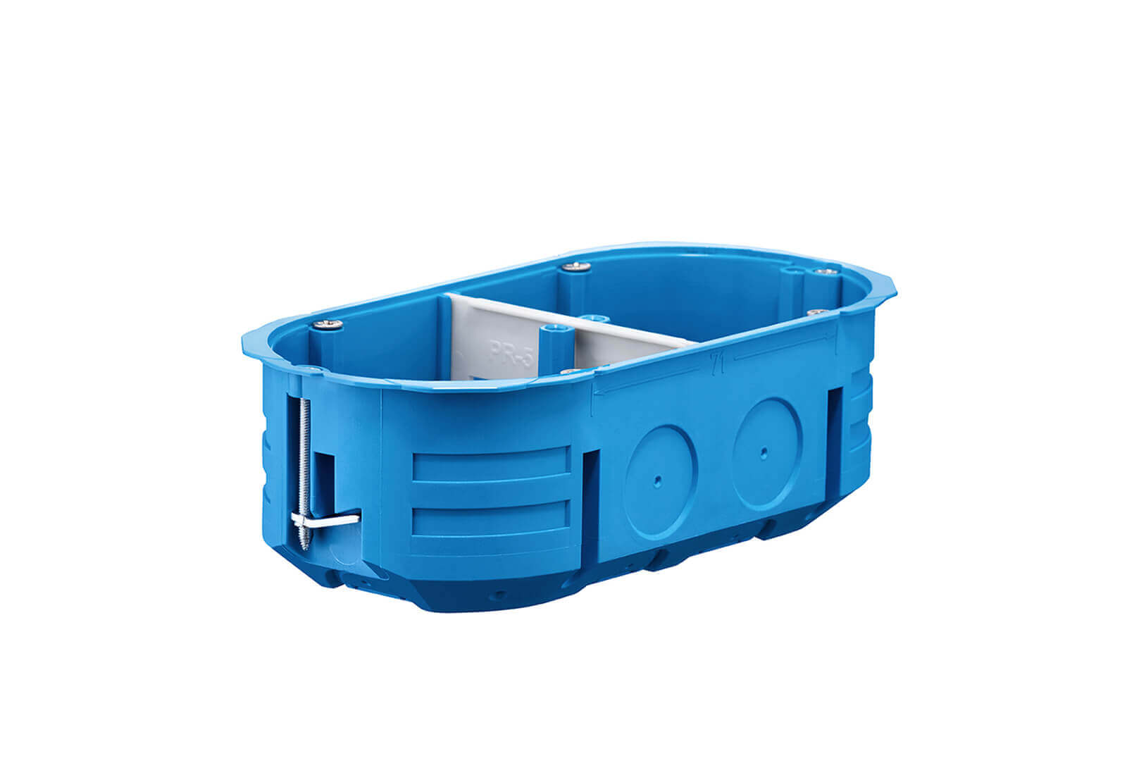 Wielopolowa puszka podtynkowa o średnicy 2×60 mm, płytka, przeznaczona do montażu w pustych ścianach, takich jak ściany z płyt kartonowo-gipsowych. Idealna do osadzenia gniazd, przełączników oraz niewielkich modułów elektrycznych i elektronicznych.