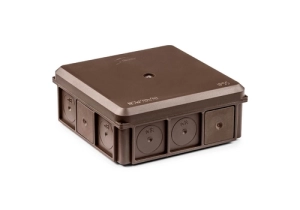 Puszka naścienna z dławnicami i 1 wkrętem, odporna na kurz i strumienie wody (IP55). Wykonana z trwałego tworzywa, zapewnia bezpieczny montaż przewodów i urządzeń elektrycznych wewnątrz i na zewnątrz budynków.