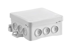 Puszka naścienna 85×85×40 mm, IP54, z mocowaniem na hakach HNS. Chroni instalacje elektryczne przed kurzem i wilgocią, zapewniając szybki i stabilny montaż.