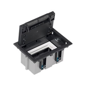 Puszka podłogowa Simon Connect SF110/14 w kolorze szary grafit to wysokiej jakości element elektroinstalacyjny marki KONTAKT-SIMON, przeznaczony do montażu w podłogach podniesionych lub wylewanych.