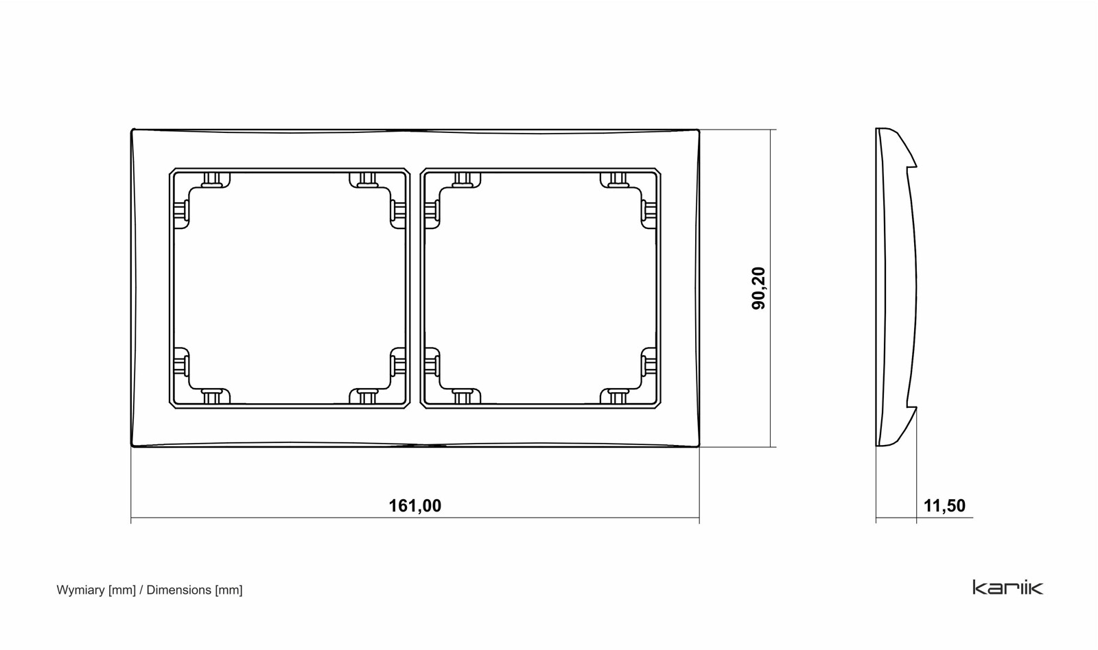 Ramka uniwersalna podwójna KARLIK DRSO-2 DECO w kolorze białym. Przeznaczona do montażu dwóch mechanizmów serii KARLIK DECO. Klasyczny design, trwałe wykonanie i łatwy montaż, idealna do każdego wnętrza.