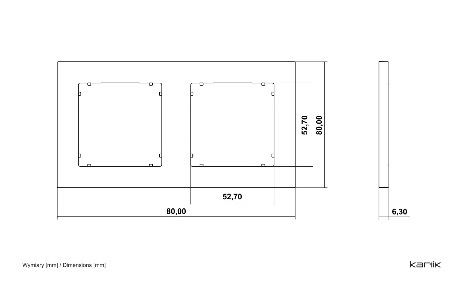 Elegancki i praktyczny element wykończeniowy instalacji elektrycznej, przeznaczony do montażu dwóch modułów, takich jak włączniki, gniazdka czy inne mechanizmy sterujące. Produkt z serii MINI marki KARLIK łączy nowoczesny, minimalistyczny design z wysoką funkcjonalnością, idealnie pasując do mieszkań, domów i biur.
