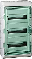 Materiał obudowy: samogasnący polimer, drzwi przezroczyste (transparentne) z odcieniem zielonym, korpus jasnoszary.