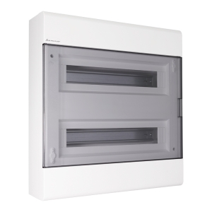 Rozdzielnica natynkowa z miejscem na 2×18 modułów, szynami N i PE, drzwiami transparentnymi i stopniem ochrony IP40. Umożliwia bezpieczny montaż i kontrolę urządzeń w instalacjach elektrycznych.