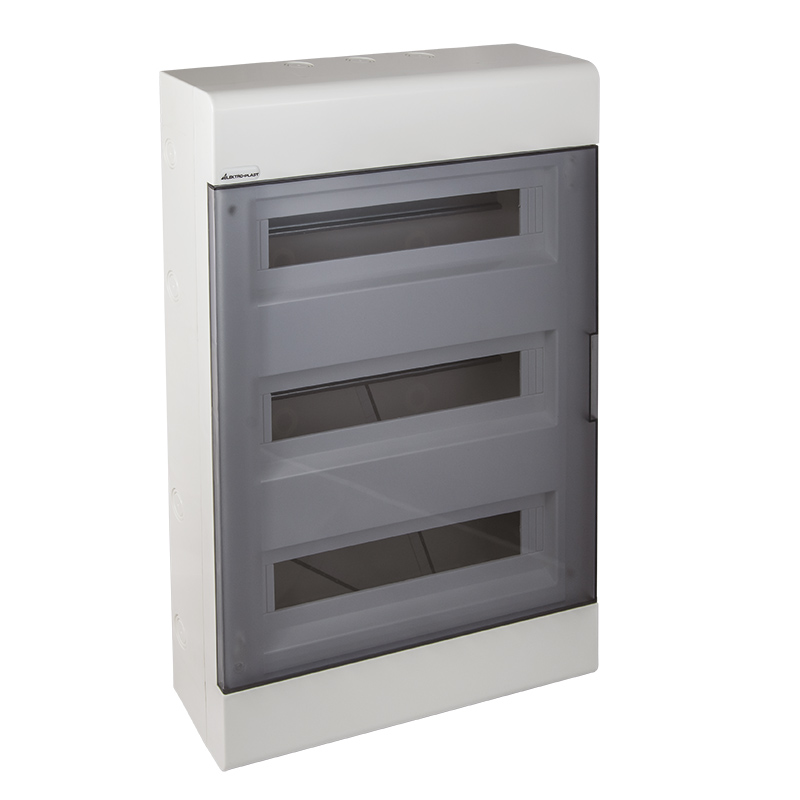 Rozdzielnica natynkowa SRn-54 (3×18) marki ELEKTROPLAST-OPATÓWEK z listwami N i PE, do montażu 54 modułów. Stopień ochrony IP40, wykonana z trwałego tworzywa, idealna do instalacji elektrycznych w pomieszczeniach suchych.