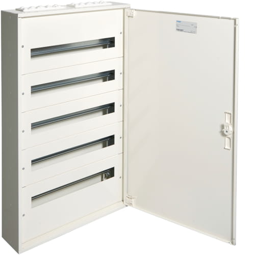 Rozdzielnica natynkowa Hager FW524WT to solidne i funkcjonalne rozwiązanie do rozdziału energii elektrycznej w budynkach mieszkalnych, komercyjnych oraz użyteczności publicznej. Dzięki swojej konstrukcji umożliwia montaż do 120 modułów w pięciu rzędach po 24, co zapewnia dużą elastyczność w konfiguracji obwodów.