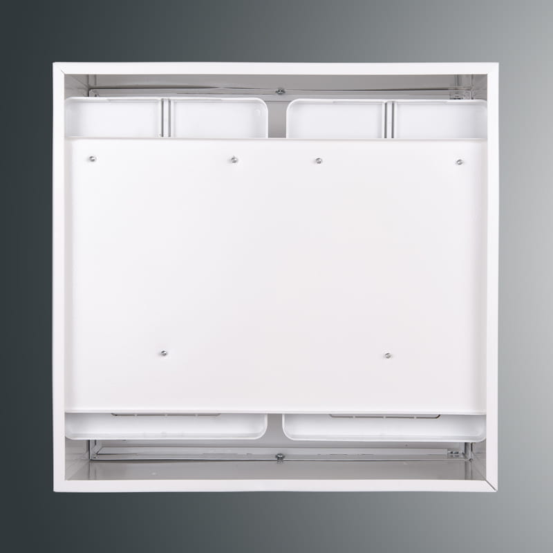 Blacha stalowa o grubości 0,8 mm malowana proszkowo na kolor biały RAL 9003. Do malowania używana jest najwyższej jakości farba poliestrowo-epoksydowa.