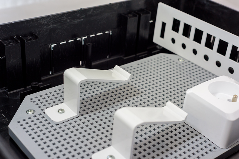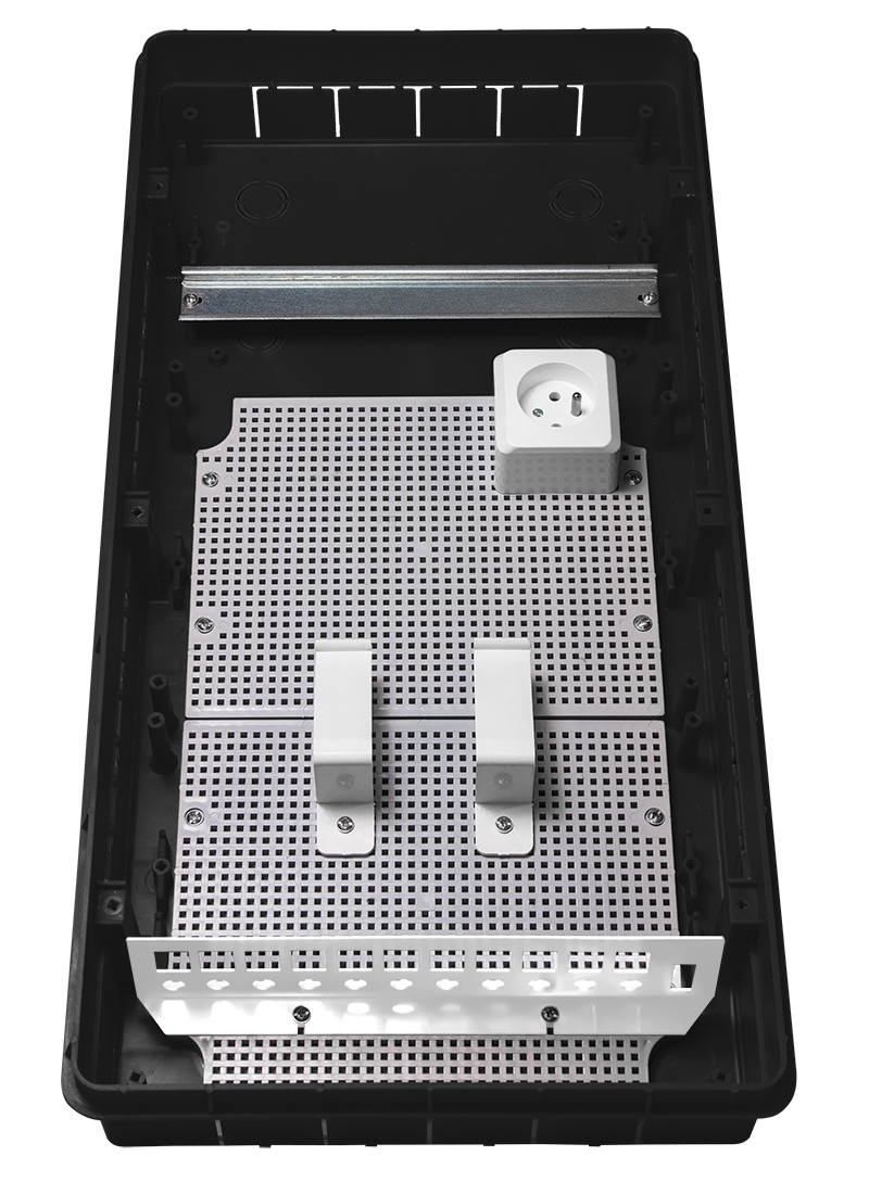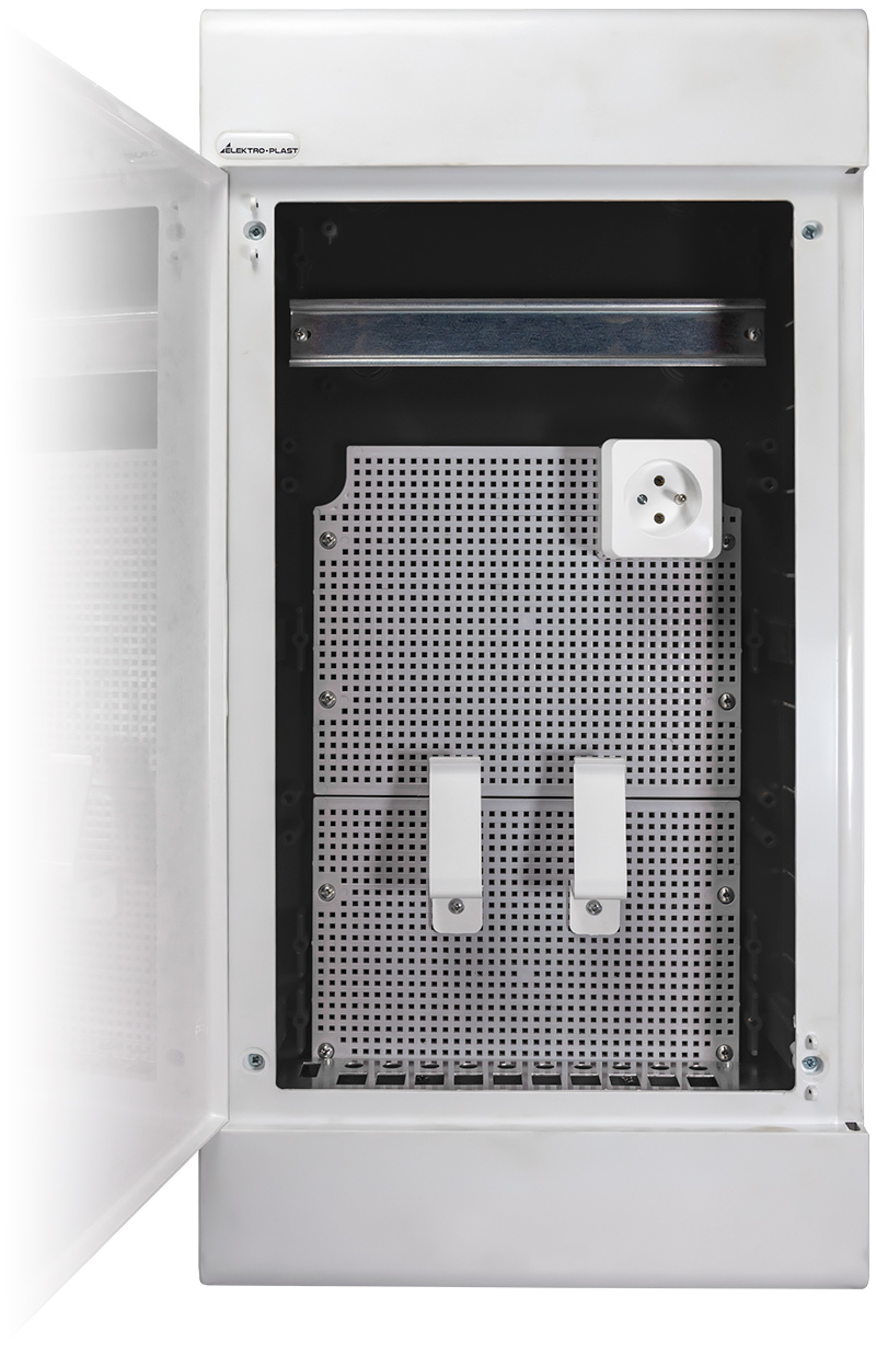 Obudowa wykonana jest z trwałego tworzywa w kolorze białym, odpornego na uszkodzenia mechaniczne i czynniki środowiskowe. Stopień ochrony IP40 zapewnia odpowiedni poziom zabezpieczenia instalacji wewnątrz pomieszczeń. Rozdzielnica umożliwia estetyczne ukrycie przewodów oraz urządzeń, zapewniając jednocześnie łatwy dostęp serwisowy.