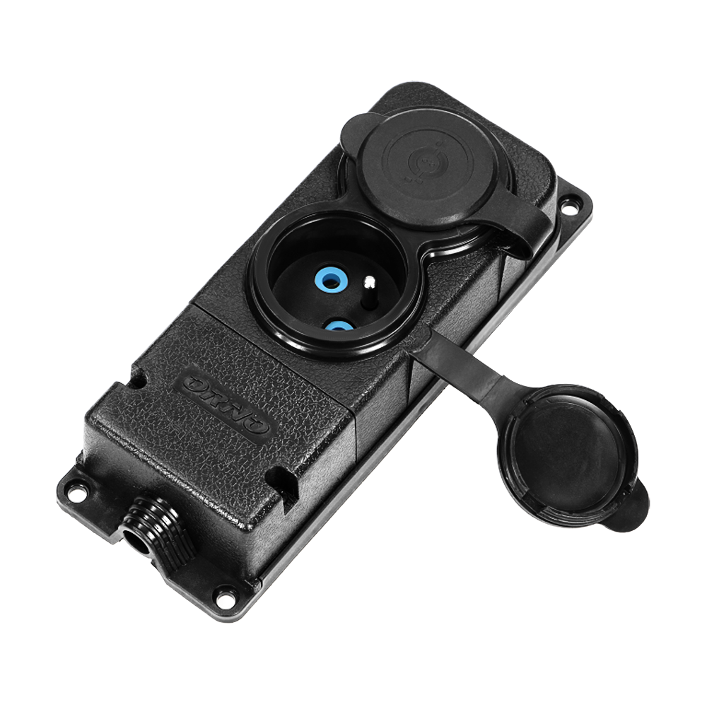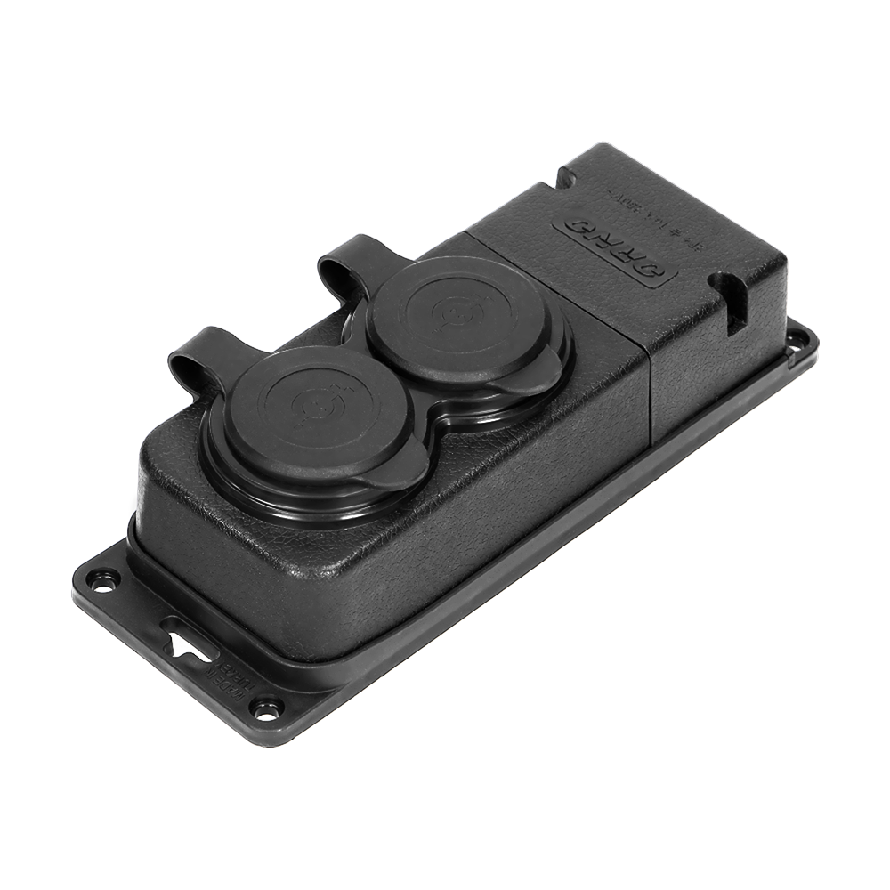 Rozdzielacz warsztatowy, o stopniu szczelności IP44. Posiada 2 gniazda (2P+Z) z gumową osłoną przeciw rozbryzgom wody i pyłom. Posiada otwór ułatwiający zawieszenie w bezpiecznym miejscu oraz 4 otwory na śruby służące do stałego montażu na stanowisku pracy. Złącze kablowe ukryto pod odkręcaną pokrywą. Do przeprowadzenia kabla służy wbudowany, gumowy przepust kablowy. Rozdzielacz posiada wyjątkowo niski 5cm profil.
