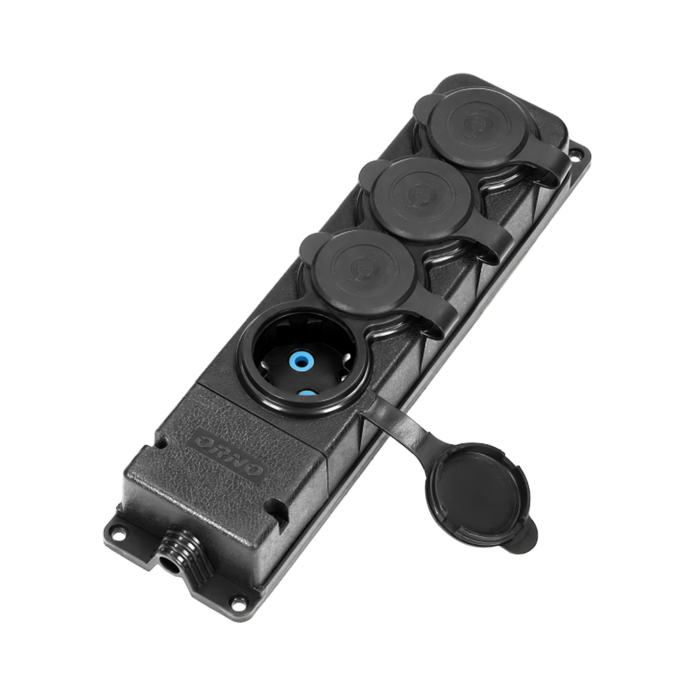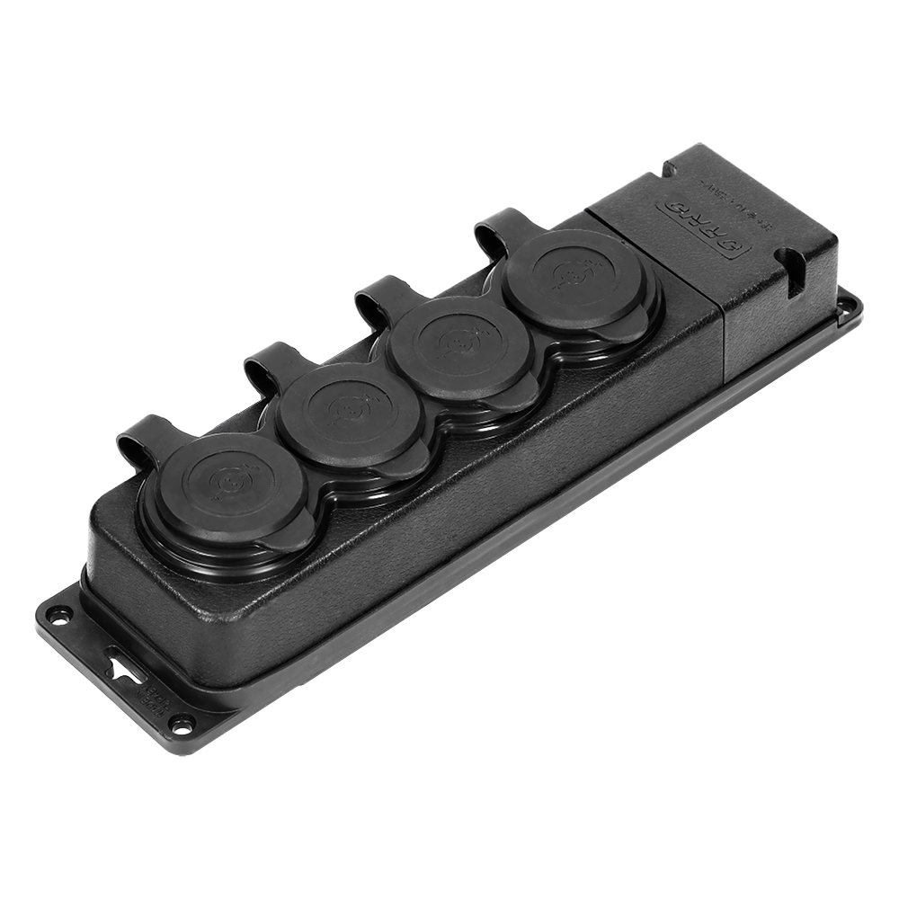 Rozdzielacz warsztatowy, o stopniu szczelności IP44. Posiada 4 gniazda (2P+Z, typ Schuko) z gumową osłoną przeciw rozbryzgom wody i pyłom. Posiada otwór ułatwiający zawieszenie w bezpiecznym miejscu oraz 4 otwory na śruby służące do stałego montażu na stanowisku pracy. Złącze kablowe ukryto pod odkręcaną pokrywą. Do przeprowadzenia kabla służy wbudowany, gumowy przepust kablowy. Rozdzielacz posiada wyjątkowo niski 5cm profil.