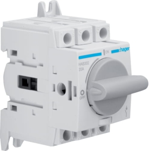 Rozłącznik izolacyjny 3-biegunowy HAB302 firmy Hager to urządzenie przeznaczone do odłączania obwodów elektrycznych w instalacjach niskiego napięcia. Jest to rozłącznik obciążenia o prądzie znamionowym 20 A, umożliwiający bezpieczne i pewne odłączenie obwodów.
