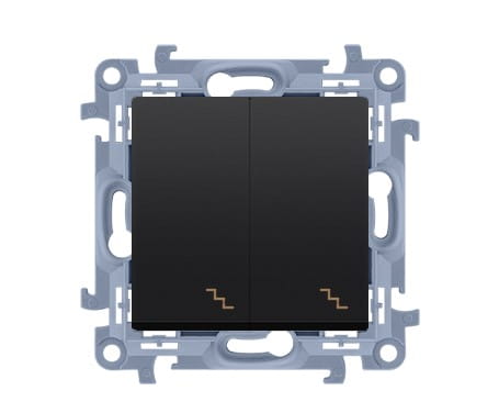 Dwa niezależne łączniki schodowe umieszczone w jednym module. Dzięki temu, zamiast dwóch oddzielnych łączników, zajmuje to mniej miejsca. Idealne do zastosowania na półpiętrze, gdzie poszczególne klawisze umożliwiają włączanie i wyłączanie oświetlenia w górnej lub dolnej części schodów. Aby osiągnąć klasę bryzgoszczelności IP-44, konieczne jest skorzystanie z uszczelki ramki, na przykład ramki jednokrotnej - CU1, oraz wkładki uszczelniającej CU1W.