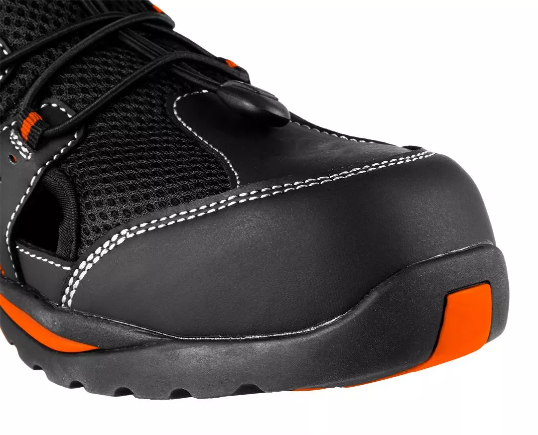 Sandały robocze S1 SRA marki NEO oferują nie tylko odpowiednią kategorię ochronną, ale również modny design i wygodę noszenia na co dzień. Oznaczenie S1 SRA informuje, że obuwie posiadają wzmocniony, kompozytowy podnosek chroniący przed urazami oraz wkładkę o antyelektrostatycznych właściwościach. Dodatkowo są odpowiednio zabudowane i charakteryzują się absorpcją energii w części piętowej. Sandały posiadają także odporność na poślizg na podłożu ceramicznym, pokrytym roztworem SLS.