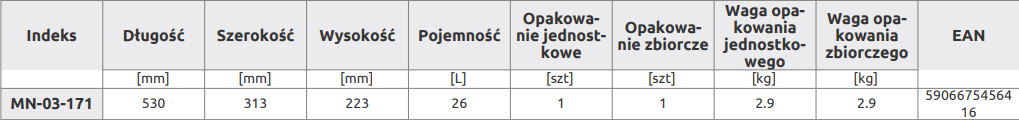 • 26 litrów pojemności.