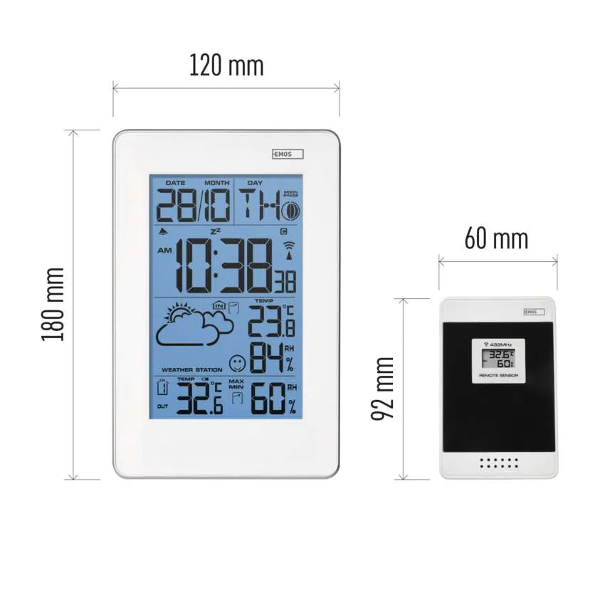 Stacja pogodowa EMOS E3003 to bezprzewodowa stacja meteorologiczna, która zapewnia dokładne i aktualne dane o temperaturze oraz wilgotności powietrza zarówno wewnątrz, jak i na zewnątrz pomieszczeń. Dzięki czujnikowi bezprzewodowemu oraz możliwości rozbudowy o 3 dodatkowe sensory (EMOS E05018), stacja umożliwia monitorowanie pogody w kilku miejscach jednocześnie.