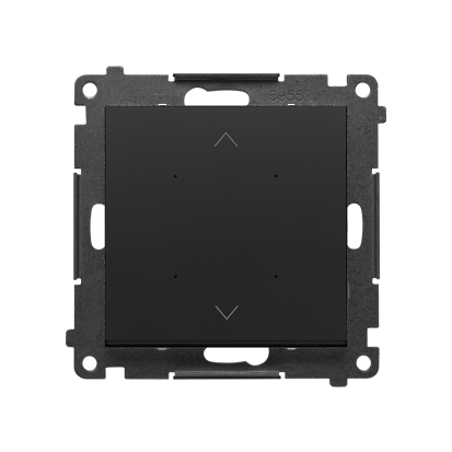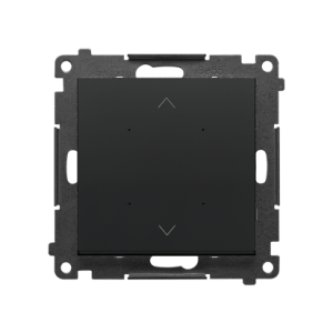 Sterownik przyciskowy SHUTTER TEZ1W.01/149 z serii Simon 55 GO, w kolorze czarnym matowym, to moduł przeznaczony do sterowania roletami, żaluzjami, markizami i firanami za pomocą smartfona przez Wi-Fi.