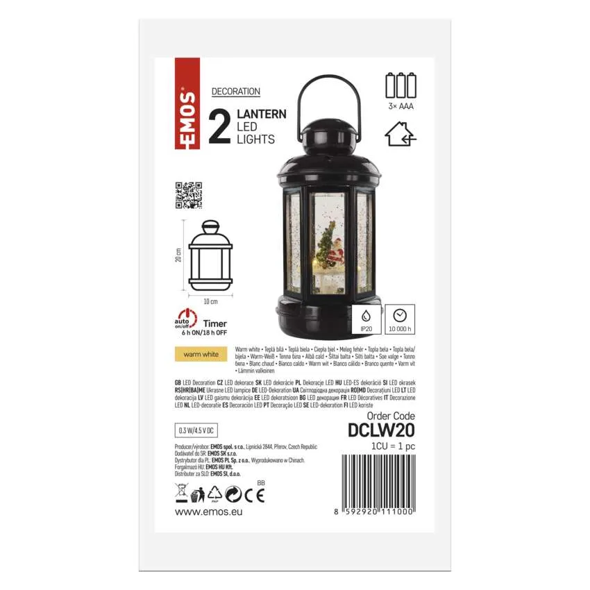 Świąteczna latarnia 20 cm 3x AAA, ciepła biel, IP20, timer EMOS DCLW20