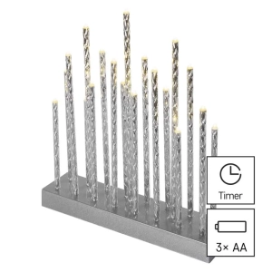 Świecznik srebrny 19 LED, 28 cm 3x AA ciepła biel, IP20, timer EMOS
