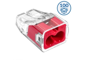 Szybkozłączka wtykowa 2-torowa 0,75–4 mm² (opak. 100 szt.) – szybkie i bezpieczne połączenie przewodów drutowych i wielodrutowych, łatwy montaż, trwała konstrukcja.