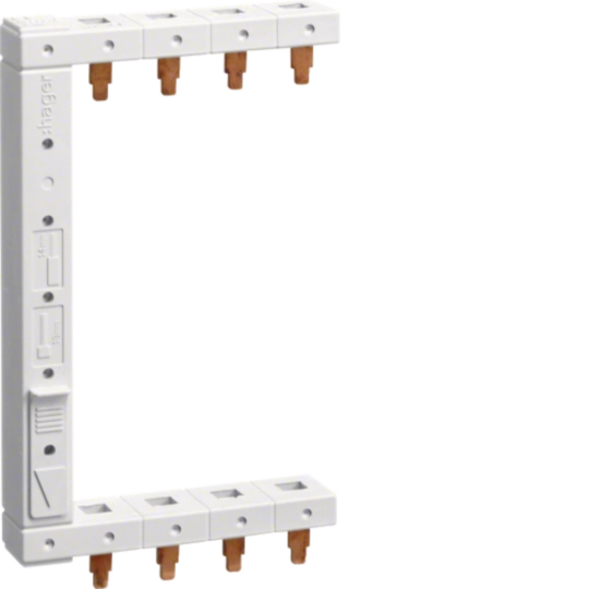 Zastosowanie: połączenia pionowe między wyłącznikami różnicowoprądowymi (RCCB) 4-biegunowymi w układach 2-rzędowych, z podłączeniem z lewej strony, od góry aparatów