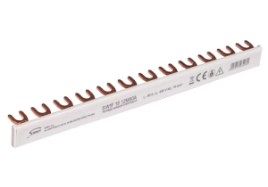 Szyna prądowa łączeniowa - widełkowa to praktyczne i bezpieczne rozwiązanie do rozdzielnic elektrycznych, umożliwiające szybkie i niezawodne połączenie obwodów. Przeznaczona do instalacji jednofazowych, charakteryzuje się wysoką wytrzymałością prądową i łatwością montażu.