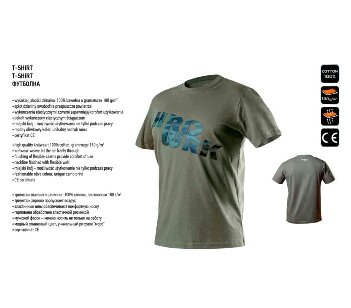 T-SHIRT ROBOCZY OLIWKOWY CAMO, ROZMIAR S