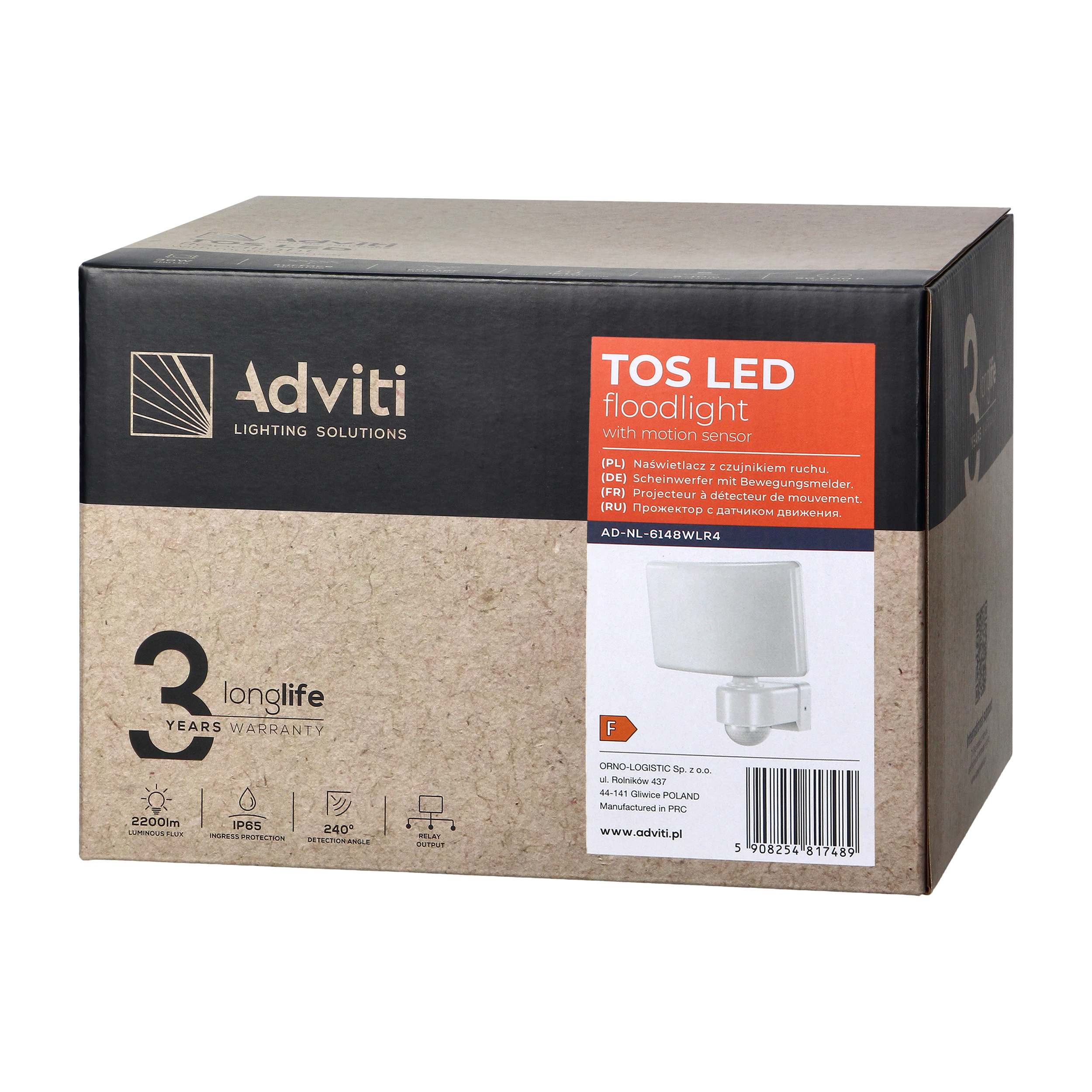 TOS LED 30W naświetlacz ogrodowy z PIR, 2200lm, IP65, 4000K, PC, biały AD-NL-6148WLR4 ORNO