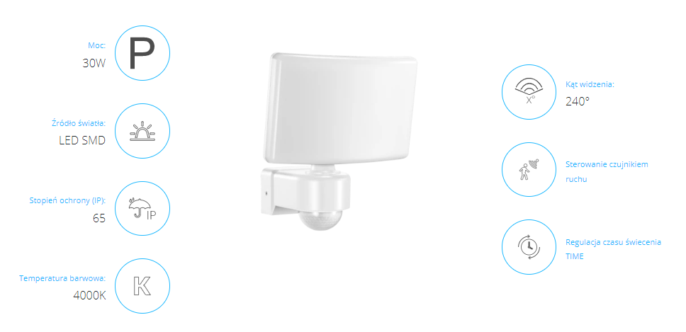 Naświetlacz ogrodowy przeznaczony jest do stosowania na zewnątrz, jako oświetlenie parkingowe, ogrodowe, posesji, fasad, reklam, itp. Może być stosowany również wewnątrz (garaże, hale). Źródłem światła są diody LED SMD, które gwarantują dużą energooszczędność i długą żywotność urządzenia. Urządzenie posiada wbudowany czujnik PIR, który włącza światło w chwili pojawienia się ruchu i umożliwia nastawienia czasu świecenia według własnych preferencji (od 10+/- sekund do 15+/- minut). Czujnik wykrywa ruch zarówno w dzień, jak i w nocy. Maksymalny zasięg detekcji wynosi 10 metrów. Ruchoma obudowa pozwala dostosować kąt świecenia do warunków pomieszczenia (poziomo 180°, pionowo 125°). Obudowa odporna na trudne warunki atmosferyczne (-20 ~+40°C). Dostępne kolory: biały lub czarny. Oprawa jest wyposażona w wyjście przekaźnikowe, sterowane wbudowanym czujnikiem ruchu. Maksymalna obciążalność wyjścia: 210W (dla LED), co pozwala na zarządzanie 7 oprawami OR-NL-6148BL4 lub OR-NL-6148WL4.
