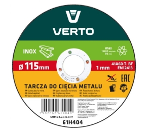 Tarcza tnąca INOX 61H404 VERTO jest doskonałym wyborem dla profesjonalistów oraz amatorów, którzy potrzebują precyzyjnego i efektywnego narzędzia do cięcia metalu.