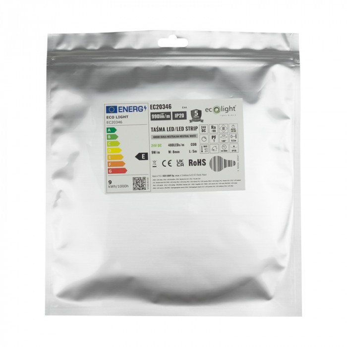 Taśma LED COB 24V 480 9W/m 4000K 990lm/m IP20 5m EC20346 ECOLIGHT