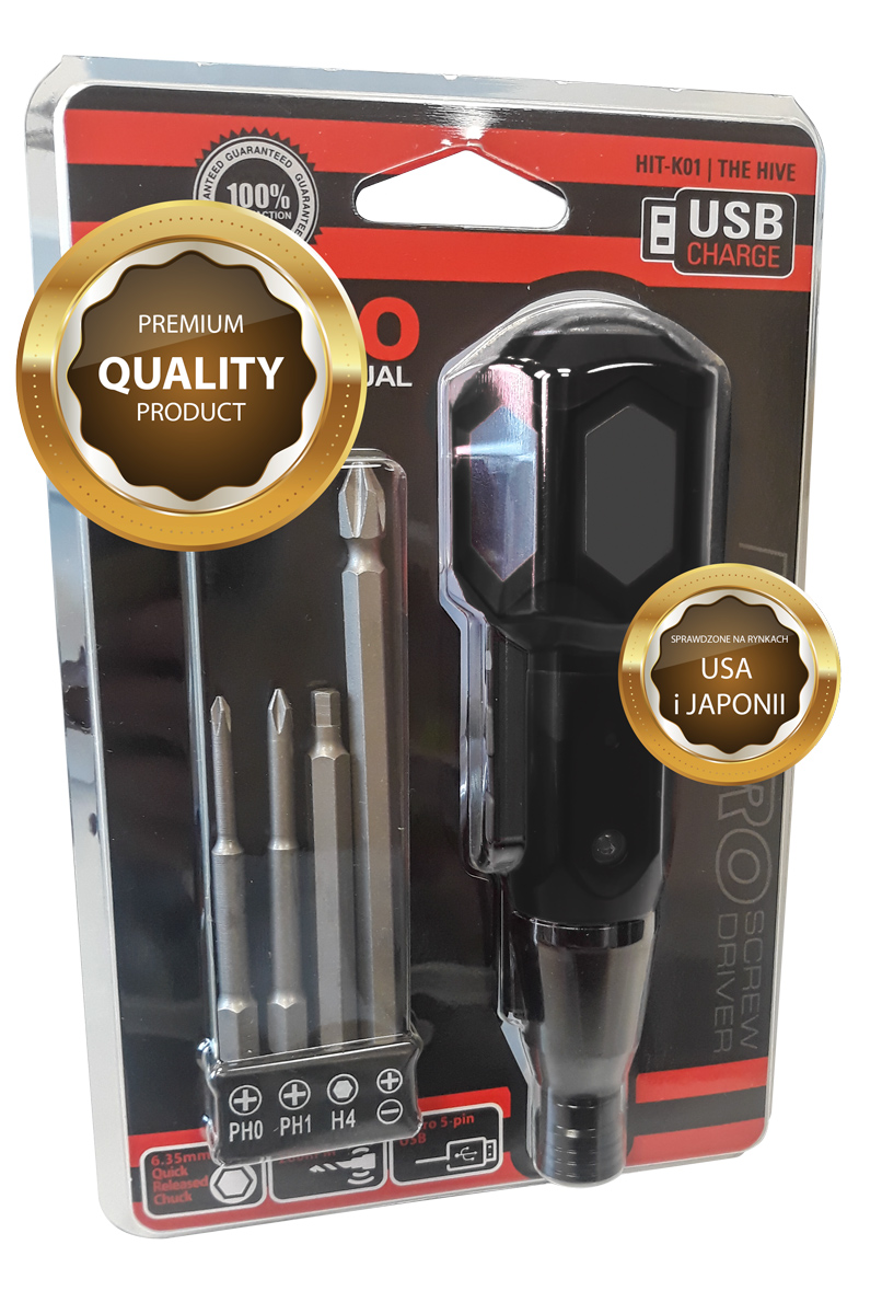Wkrętarka manualno-elektryczna HIT K01 z ładowaniem USB ELEKTROPLAST-OPATÓWEK to uniwersalne narzędzie, które łączy funkcję wkrętarki manualnej i elektrycznej, zapewniając komfort i wygodę pracy w domu, warsztacie czy podczas drobnych napraw. Dzięki kompaktowej konstrukcji i zasilaniu przez USB, urządzenie jest łatwe w ładowaniu i zawsze gotowe do użycia.