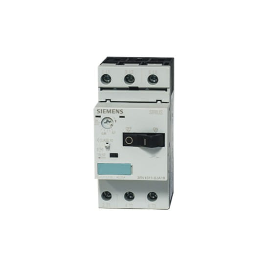 Wyłącznik silnikowy (wyłącznik ochronny silnika) Siemens Sirius 3RV1011-0JA10 służy do zabezpieczania silników elektrycznych przed przeciążeniem, zwarciem i zanikami faz. Urządzenie montuje się na szynie DIN i stosuje w rozdzielnicach oraz sterownikach silnikowych.