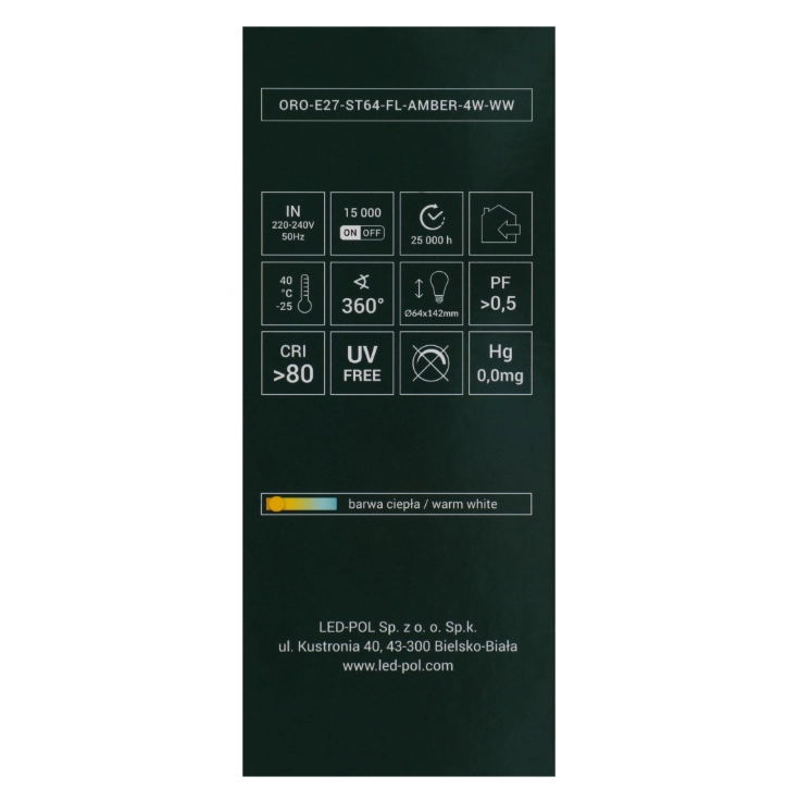 Żarówka ORO AMBER E27 ST64 1,3W WW LED-POL