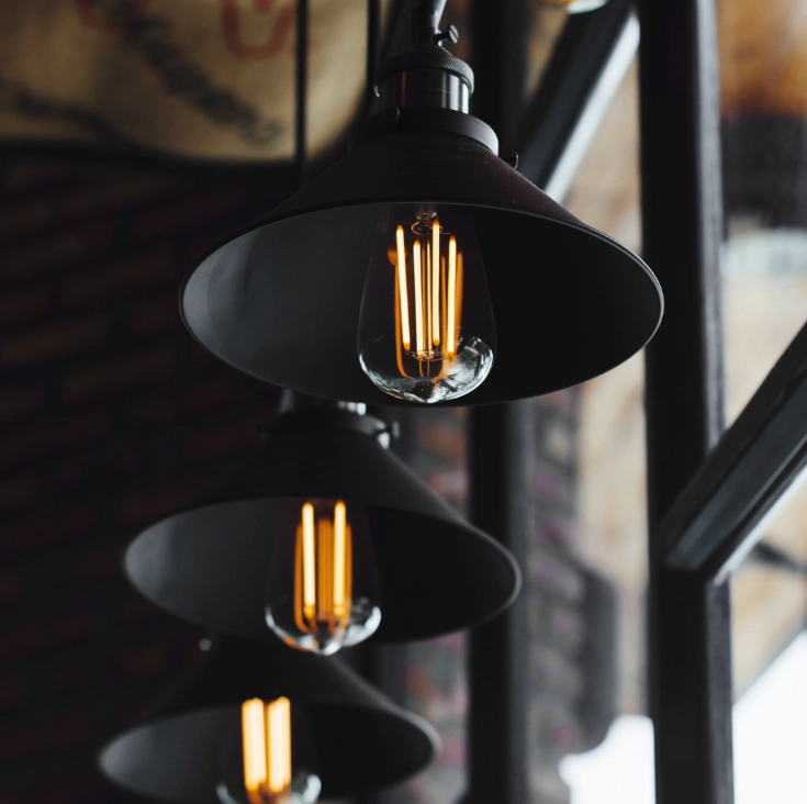 - w lampach wiszących oraz oprawach z widocznym źródłem światła